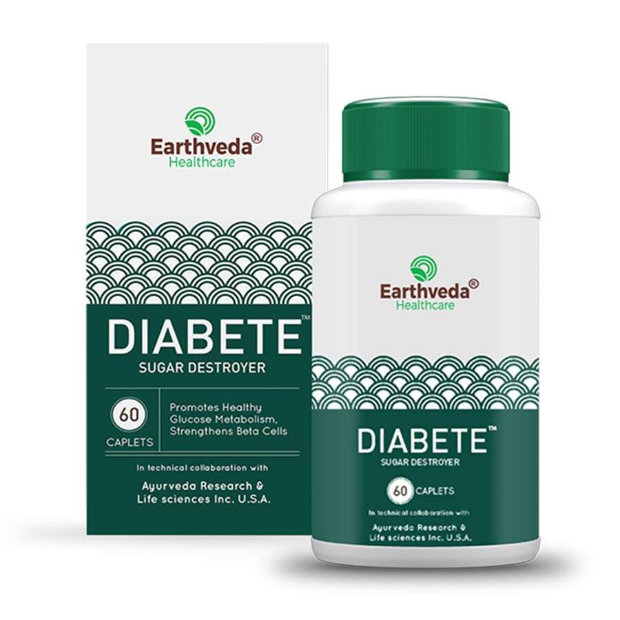 Earthveda Diabete Caplets™ are a vital blend of important Ayurvedic herbs which helps in managing and controlling moderate to severe high blood sugar. Diabete Caplets™ is enriched with highly potent extracts of important herbs like Vijaysara, Gymnema (Gudmar), Vasantkusumakar Ras, Praval Pishti and many more.