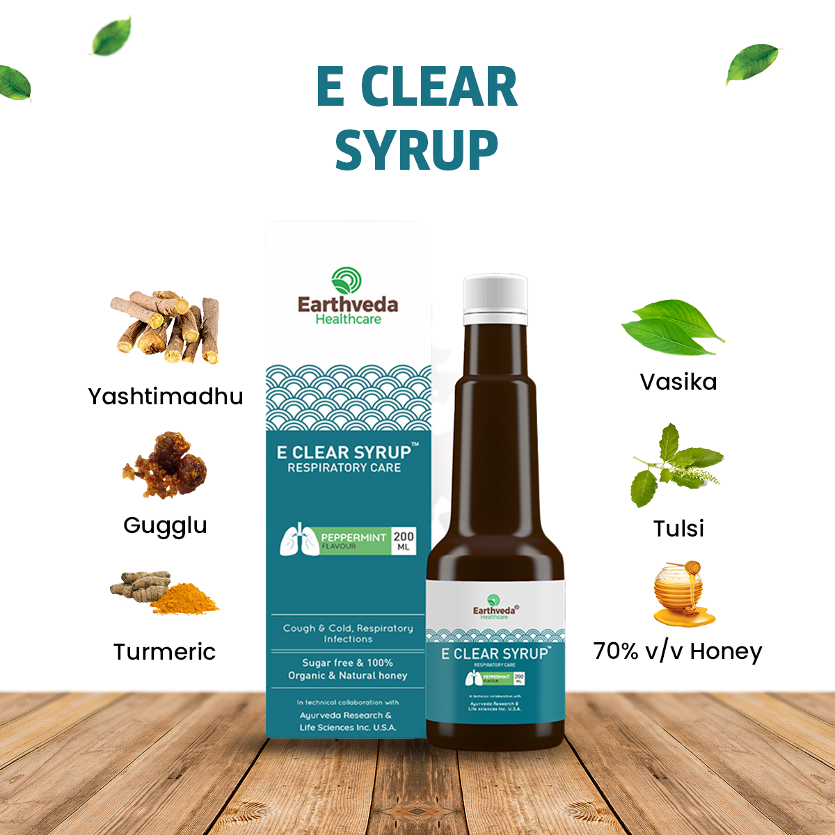 Earthveda E Clear Syrup™ are a vital blend of important Ayurvedic herbs like Holy Basil (Tulsi), Organic Honey, Licorice and many more that promote health and ensure well-being, while bolstering the body’s natural defences.